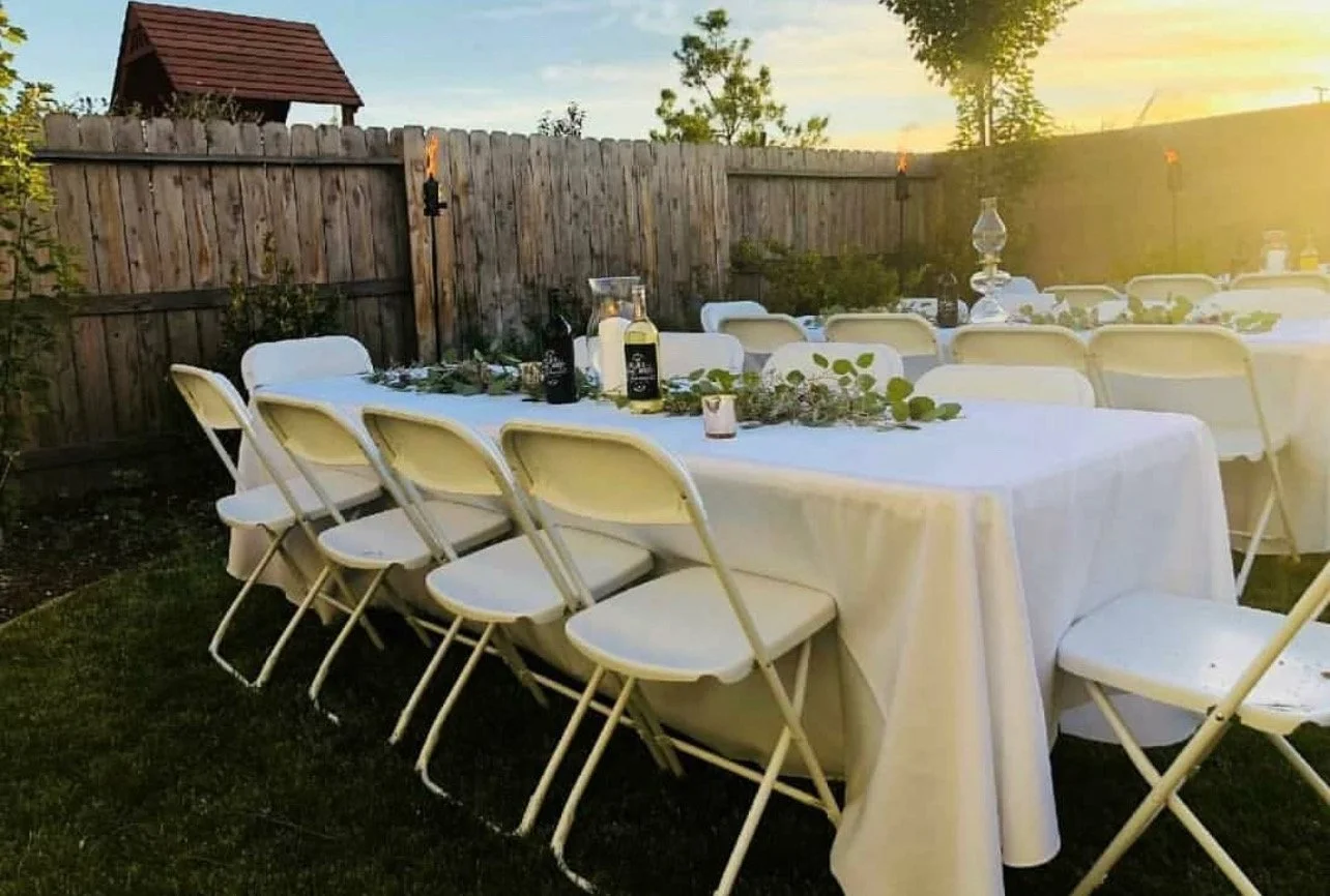 Tables, chairs, linens, tableware, backdrops, and stylish furniture to match any vibe.